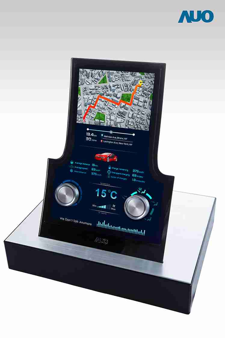12.3 寸 Full HD LTPS 显示屏同样具备 1000 nits 高亮度,,,,搭载内嵌式触控技术,,整合驱动与触控 IC 于显示屏制程,,,使显示屏厚度降低,,,,为中控台创造更多机构设计空间。。。应用于抬头显示器的 3寸 LTPS 显示屏具有高穿透率、、、1200:1 高对比度度,,以及 297 PPI 高画素密度。。液晶最高可耐受到 110C 的高温 (TNI) 而不液化,,,在阳光高温下维持优异稳定的显示效果。。。。