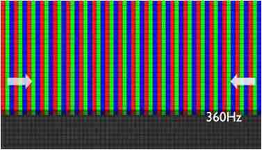 传统液晶驱动是从左到右单向进行,,,在画面更新速度愈来越愈快的情况下,,位于驱动线路末端的右下角区域,,画素的闸极来不及在短时间内获得足够电压,,,无法显示出正确的颜色资讯。。。 |